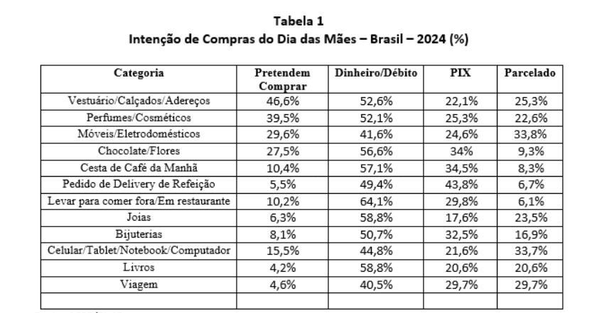 A pesquisa também constatou que a maioria das compras será feita em pequenos estabelecimentos (45,7%), com uma preferência por compras presenciais em lojas físicas (61,5%). Além disso, a maioria dos entrevistados (66,7%) afirmou que não pretende usar o adiantamento do 13º salário para as compras do Dia das Mães.