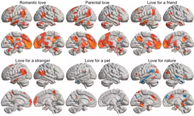 Pesquisadores da Universidade de Aalto, na Finlândia, descobriram que o amor, em suas diversas formas, ativa áreas específicas do cérebro. O estudo, publicado no jornal científico Cerebral Cortex, identificou seis principais tipos de amor: pelo parceiro, pelos filhos, pelos amigos, pelos animais de estimação, pela natureza e até por estranhos. Cada um desses tipos de amor revela nuances e funções distintas no cérebro humano.